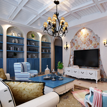 地中海風格在造型方面,一般選擇流暢的線條,圓弧形就是很好的選擇,他可以放在我們家居的空間的每一個角落,一個圓弧形的拱門,一個流線型的門窗,都是地中海家裝中的重要元素。