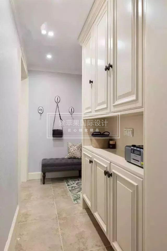 一般是和進(jìn)門吊頂結(jié)合設(shè)計(jì)的,不僅美觀實(shí)用而且可以大大節(jié)省室內(nèi)空間。利用墻面的空間,在考慮墻體的承重范圍下,在玄關(guān)處設(shè)計(jì)嵌入式鞋柜,能夠保證鞋柜足夠安全。