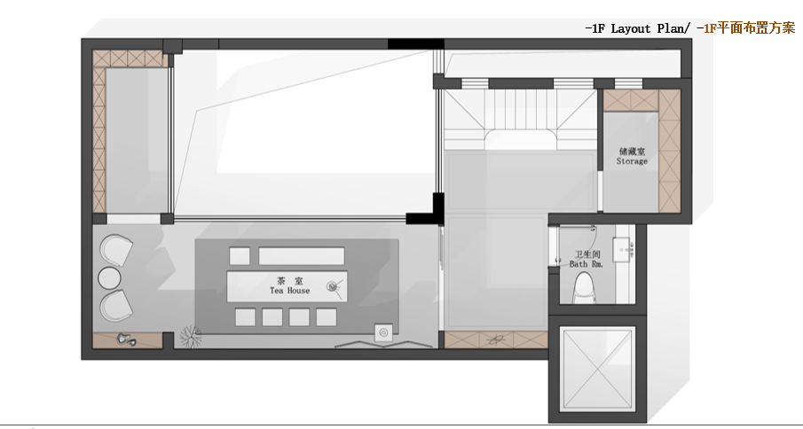 -1F:茶室,衛(wèi)生間,儲(chǔ)藏室【61.5㎡】