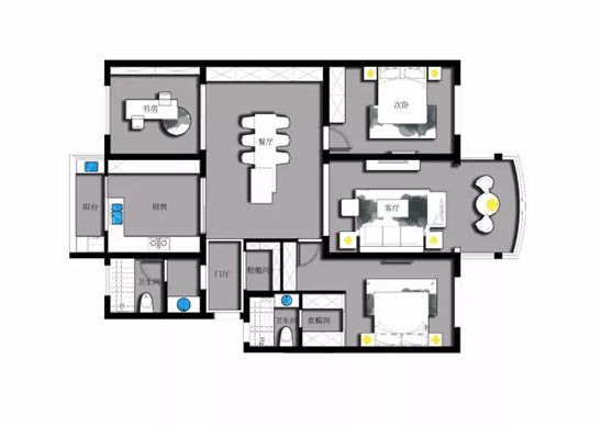 3. 主臥格局改變,增加主臥衣帽間功能。調(diào)整空間比例,讓生活更舒適